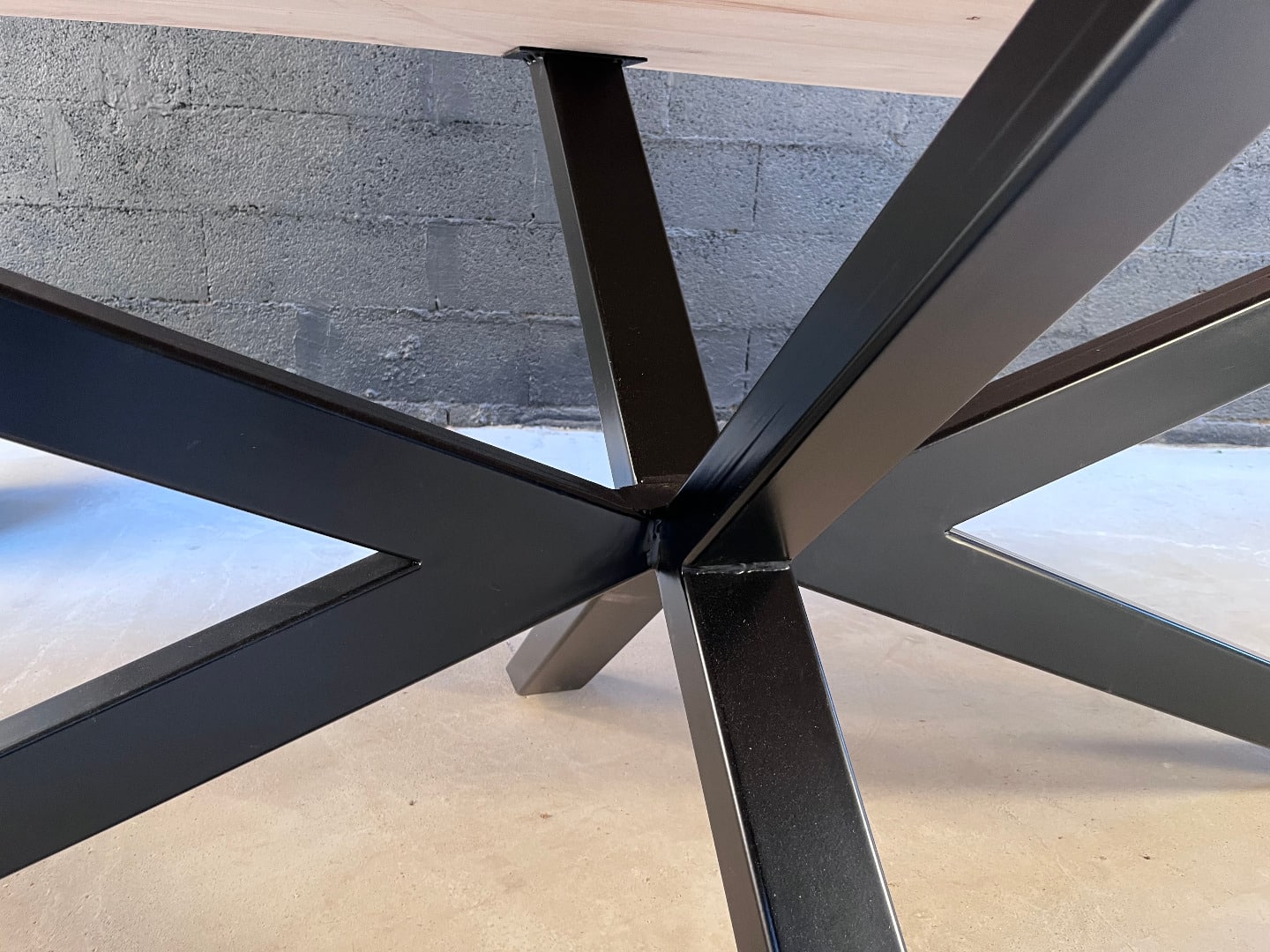 Le plateau repose sur un pied en acier en forme d’étoile.